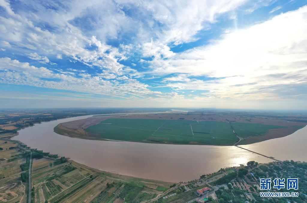 這是6月18日在河南省蘭考縣黃河灣風(fēng)景區(qū)拍攝的黃河(無人機照片)。新華社發(fā)(李金雷 攝)