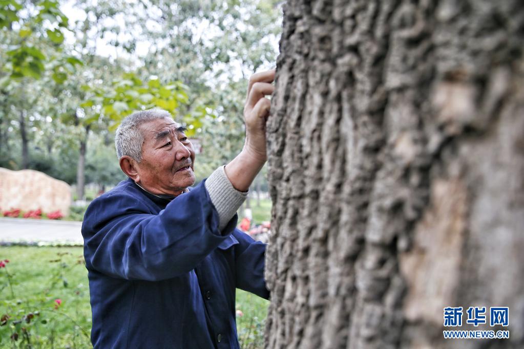 79歲的蘭考農(nóng)民魏善民有一個保持了50年的習(xí)慣,每天一大早,他都要馱著掃帚、簸箕,到離家一公里外的一棵樹下掃葉、澆水、施肥。