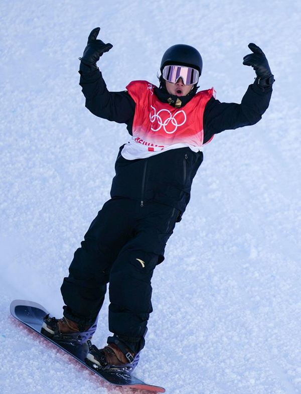 2月6日,中國選手蘇翊鳴在比賽中。當(dāng)日,北京2022年冬奧會(huì)單板滑雪項(xiàng)目男子坡面障礙技巧資格賽在張家口云頂滑雪公園舉行。新華社記者薛玉斌攝