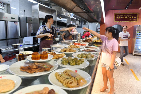 游客在三明市沙縣區(qū)的一家小吃店內(nèi)選購品種豐富的沙縣小吃(2021年6月10日攝)。新華社記者林善傳攝