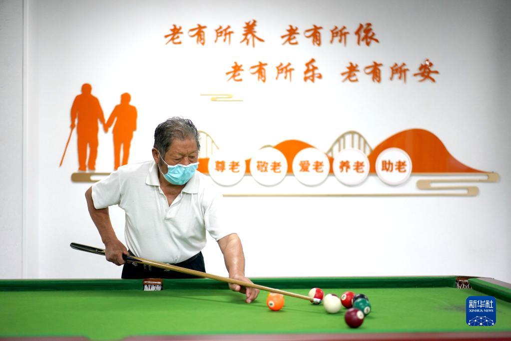 江蘇省張家港市永聯(lián)村的村民在打臺(tái)球娛樂(lè)(2022年7月16日攝)。新華社記者 季春鵬 攝