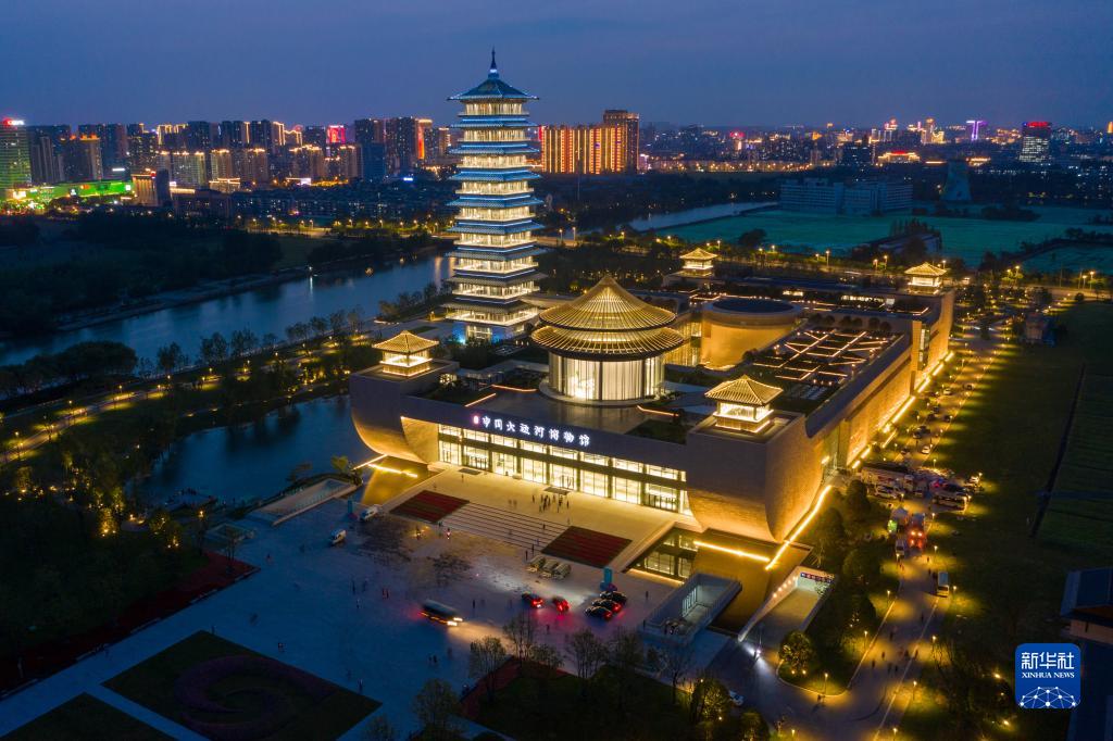 這是在江蘇省揚(yáng)州市拍攝的中國(guó)大運(yùn)河博物館夜景(2021年6月15日攝,無(wú)人機(jī)照片)。新華社記者 李博 攝