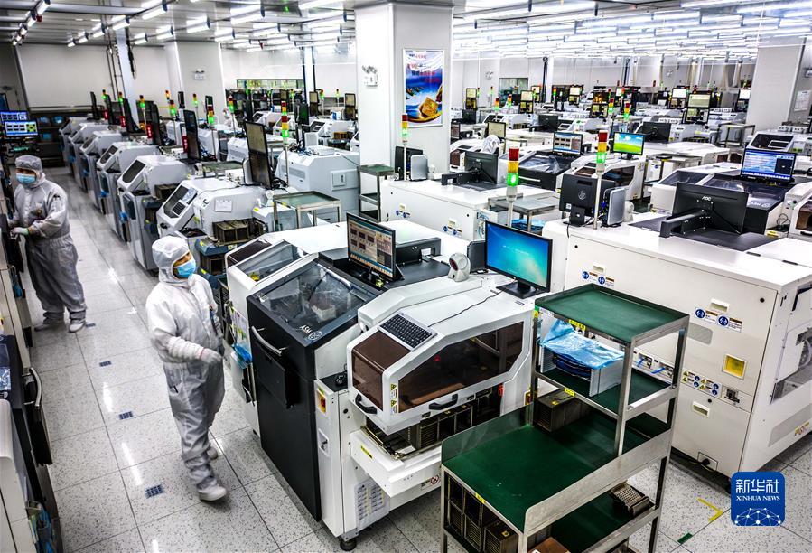 2022年5月26日,在安徽省合肥經(jīng)濟技術(shù)開發(fā)區(qū)的合肥通富微電子有限公司,員工在裝片生產(chǎn)線上作業(yè)。新華社發(fā)(解琛 攝)