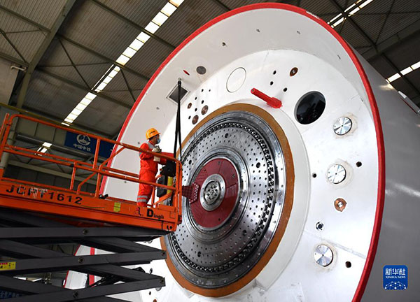 工人在位于河南省鄭州市的中鐵工程裝備集團盾構機總裝車間作業(yè)(2020年3月18日攝)。新華社記者 李嘉南 攝