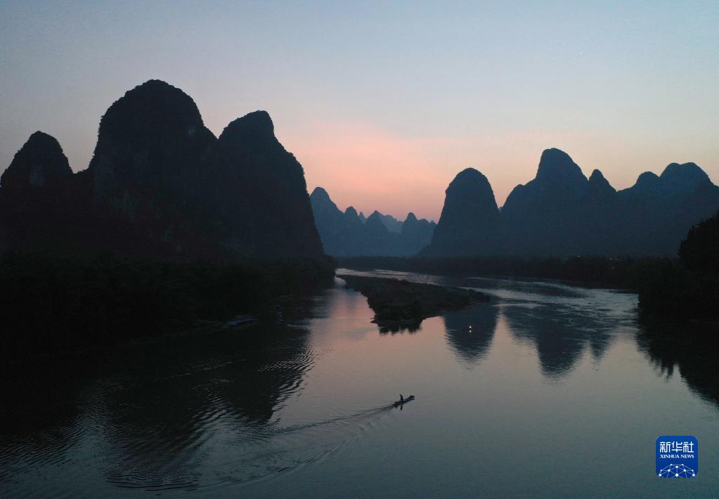 這是在廣西陽(yáng)朔縣興坪鎮(zhèn)拍攝的漓江風(fēng)光(2020年5月19日攝,無(wú)人機(jī)照片)。新華社記者 周華 攝