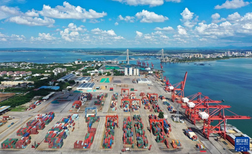 位于海南洋浦經(jīng)濟(jì)開(kāi)發(fā)區(qū)的洋浦港(7月22日攝,無(wú)人機(jī)照片)。新華社記者 郭程 攝