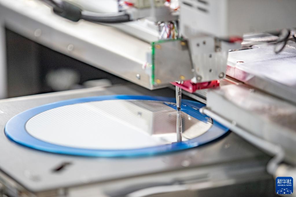 在重慶平創(chuàng)半導(dǎo)體研究院有限責(zé)任公司,工作人員利用設(shè)備對芯片進(jìn)行貼片作業(yè)(2022年4月15日攝)。新華社記者 黃偉 攝
