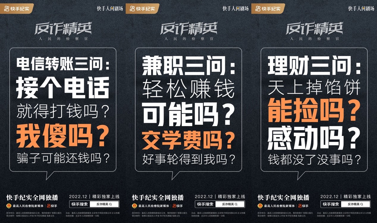 單親媽媽為何深陷“殺豬盤”執(zhí)迷不悟?什么樣的項(xiàng)目專騙老年人還屢屢得手?詐騙分子如何一人分飾多角?現(xiàn)實(shí)中,電信網(wǎng)絡(luò)詐騙犯罪愈演愈烈,亟需人們提高警惕。近日,反電信網(wǎng)絡(luò)詐騙法正式施行。由最高人民檢察院新聞辦公室、第四檢察廳及檢察日?qǐng)?bào)社指導(dǎo),最高人民檢察院新媒體、快手及正義傳媒聯(lián)合出品的反詐主題紀(jì)實(shí)短劇《反詐精英——人民的檢察官》(以下簡稱“《反詐精英》”)于2022年12月10日在快手獨(dú)家上線,@最高人民檢察院 @正義網(wǎng) 兩大快手賬號(hào)首發(fā)?!斗丛p精英》從奮戰(zhàn)在辦案一線的人民檢察官視角出發(fā),以富有戲劇張力的紀(jì)實(shí)短劇形式講述真實(shí)反詐故事,創(chuàng)新呈現(xiàn)專業(yè)普法內(nèi)容。